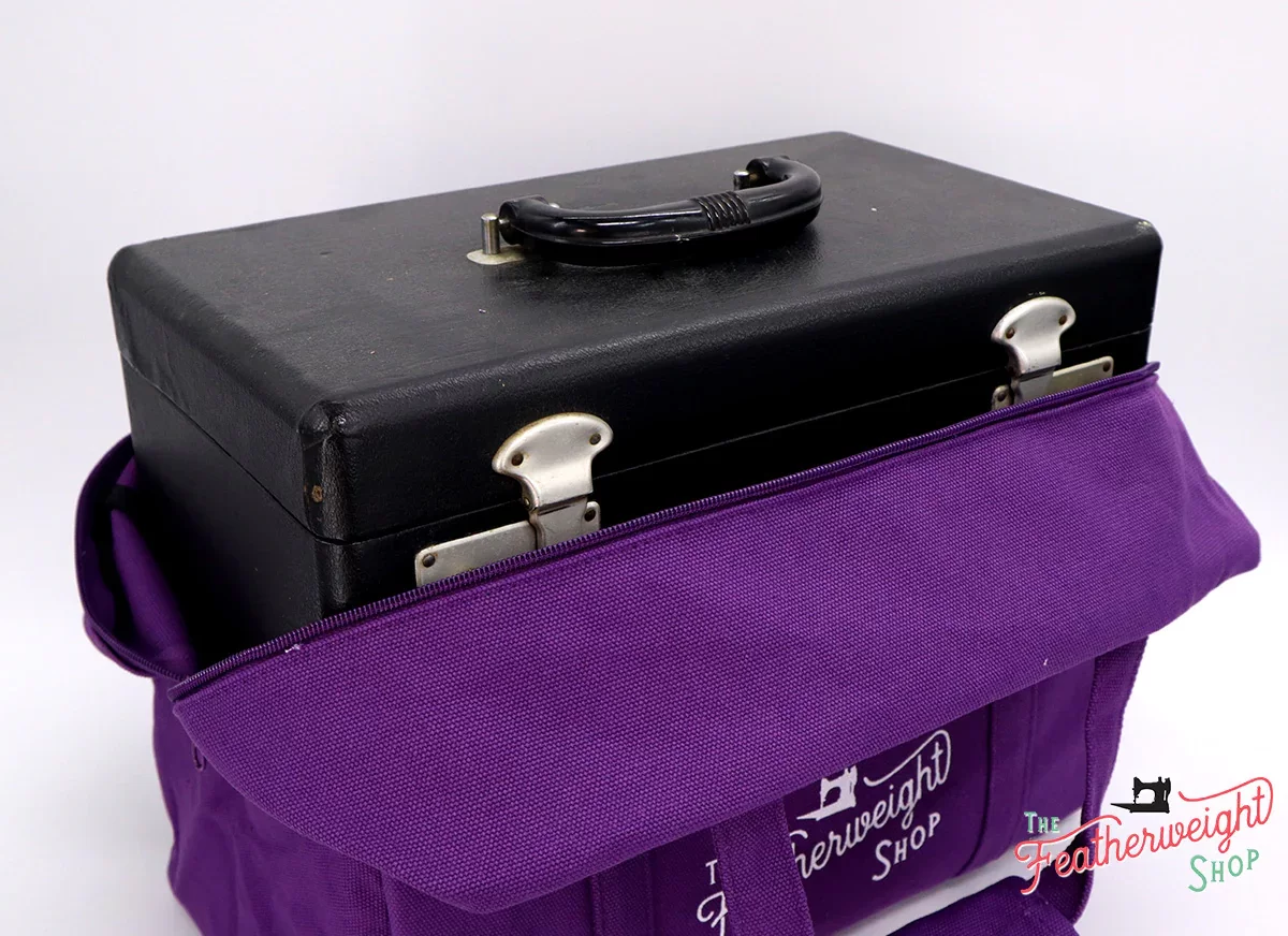 This canvas Featherweight Case Tote Bag is ideal for carrying your Featherweight in its case! It also protects your case exterior or if your case has a compromised handle or even clasps or latches missing, this will make it easier to carry. Perfect for travel or you might even choose to fill your bag instead with fabric, quilt kits, bundles, rulers, pattern books, maintenance & servicing tools, manuals, accessories, or even a quilt! Case Tote comes in Black, Green, and Pink. We also now have Red, Purple, and Light Blue.